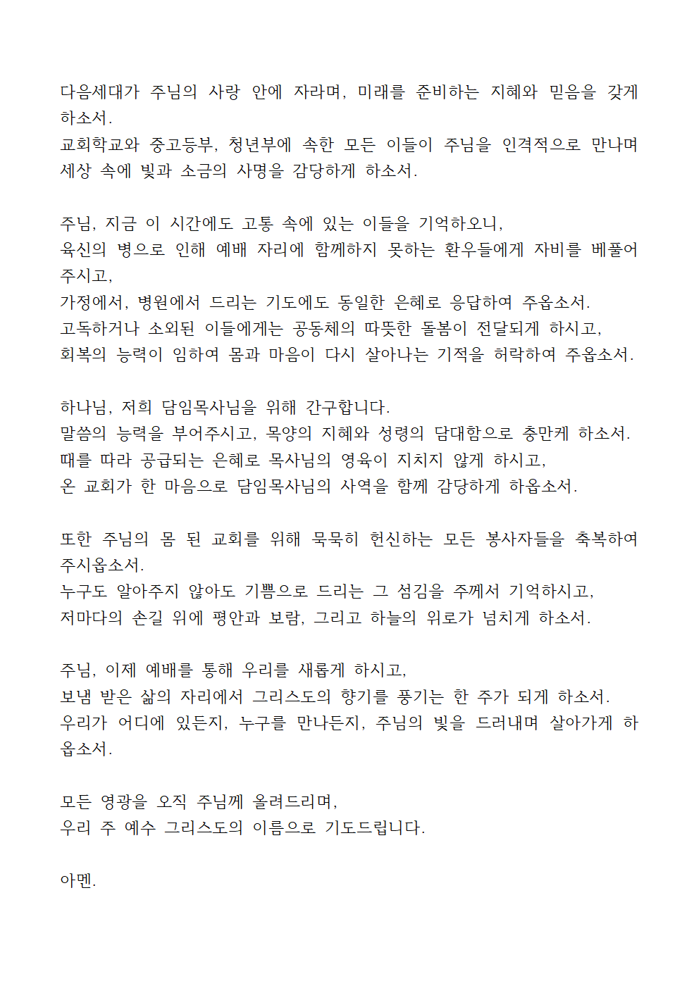 이 모든 말씀, 우리 구주 예수 그리스도의 이름으로 기도드립니다. 아멘.