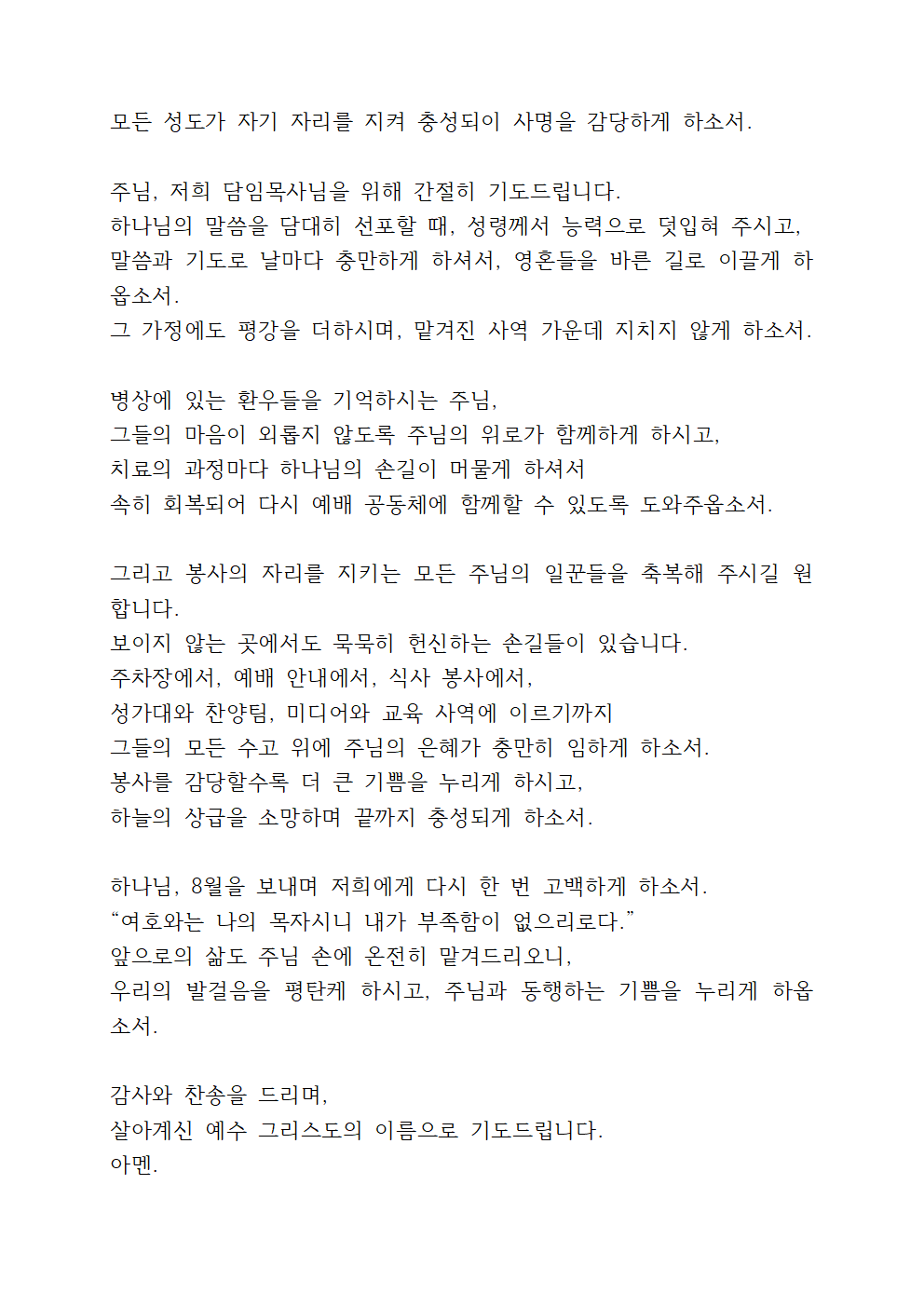 8월 넷째 주일예배 대표기도문 2